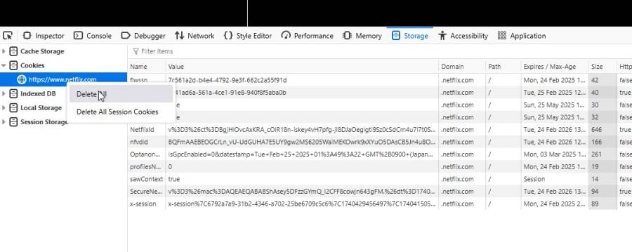 Right Clisk on [https://www.netflix.com] -> [Delete All]